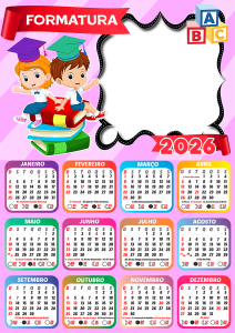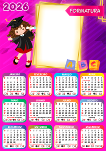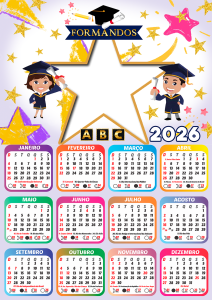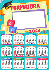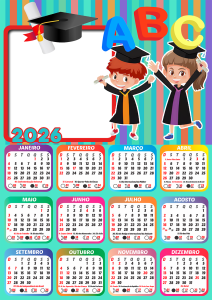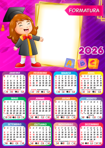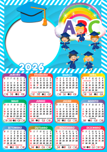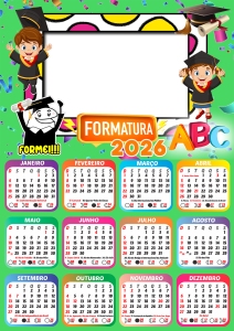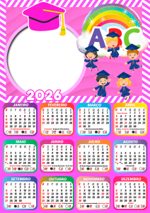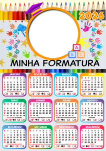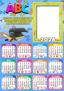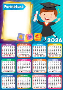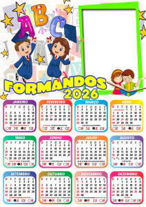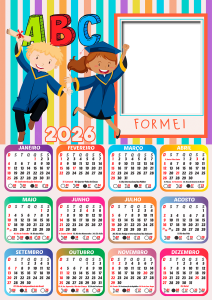 Não perca tempo! Escolha agora sua moldura de calendário 2026 formatura ABC infantil, personalize com as fotos dos formandos e eternize esse momento tão especial com estilo e criatividade. Tudo grátis, online e em alta qualidade.
