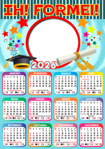 Caso não encontre o modelo que deseja, não tem problema! Nossa equipe cria novas molduras personalizadas de acordo com o tema que você sugerir. Assim, você sempre terá um modelo exclusivo de calendário de formatura infantil 2026 com o estilo que quiser.