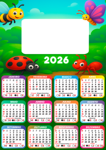 Calendário 2026 Infantil para Foto Montagem e Impressão