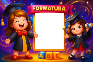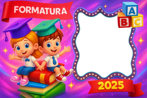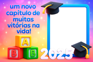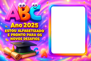 As molduras foram criadas com muito carinho, trazendo elementos que remetem à alfabetização e à educação infantil — como capelos, diplomas, lousas, livros e personagens alegres. Cada detalhe foi pensado para transmitir a alegria e o orgulho desse momento tão importante.