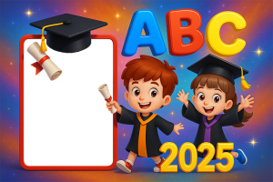 Se você está procurando ideias para presentear os formandos, decorar a escola ou preparar algo especial para as famílias, vai adorar esta sugestão: molduras para montagem de fotos de alunos na Formatura ABC 2025, em formato PNG com fundo transparente, prontas para adicionar as fotos das crianças e transformar em lindas lembrancinhas.