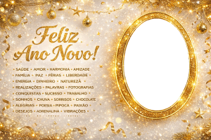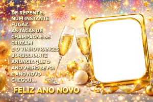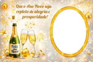 As molduras temáticas trazem elementos típicos de Réveillon, como fogos de artifício, brilho dourado, taças de champagne, relógios marcando a virada e mensagens positivas. Ao inserir sua foto nessas artes, você cria uma imagem comemorativa única, cheia de estilo e significado.
