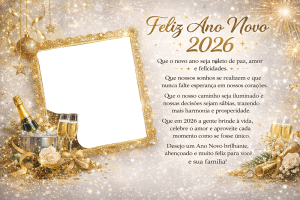 Criar sua montagem com a Moldura de Feliz Ano Novo 2026 é uma forma simples e elegante de celebrar a virada de ano com estilo. Com ferramentas gratuitas, aplicativos intuitivos e arquivos em alta qualidade, qualquer pessoa consegue produzir uma lembrança cheia de brilho e significado para marcar o início de 2026.