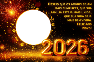 Moldura Feliz Ano Novo 2026 para Foto Montagem